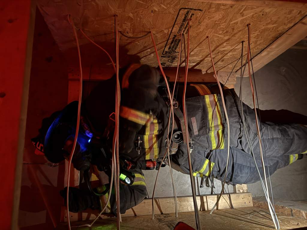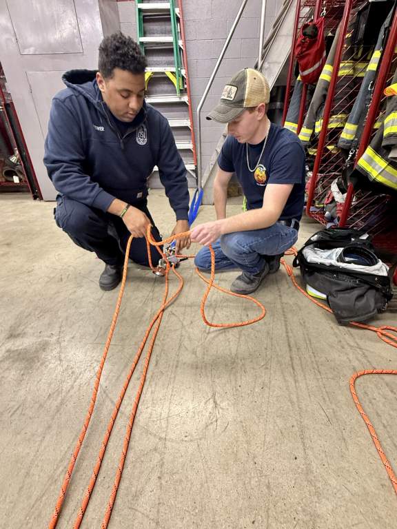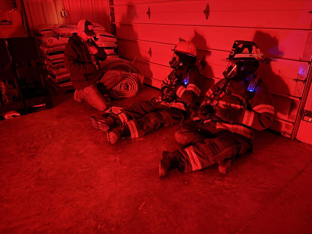 Tonight’s weekly training consisted of annual air pack certification. All firefighters must pass a mask fit test and show proficiency putting on and operating the air pack. Interior firefighters must also complete the maze, RIT/Downed FF drills and the front porch drill.
